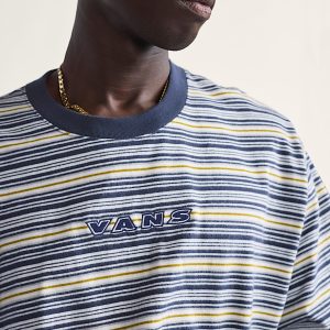 The Cameron Stripe T-Shirt is crafted of double-sided brushed jersey, knit with a soft brushed texture you'll feel inside and out. With short sleeves for a casual, everyday style and bold stripes, it's finished with an embroidered Vans logo for premium detailing.