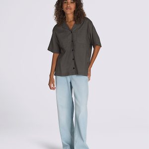 Short sleeve button-up shirtSheer slubby woven fabrication for unique uneven textureEmbroidered Vans® logo on the chest pocketBoxy fit for a relaxed, oversized silhouette100% cotton