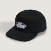 5-panel shape with medium structureSlightly curved bill shapes to the face for a classic fitAdjustable snap for a custom fitDirect embroidery at front panelVans flag label at back snap closure100% cotton