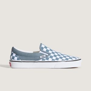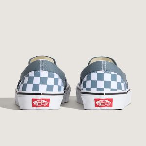 Iconic slip on shoeCanvas upper for a classic lookPadded collar for support and comfortElastic side panels for easy slip-on and offRubber sidewall with classic foxing stripeVulcanized build for the original look and feelSignature waffle outsole pattern for reliable grip since '66Checkerboard branding is unmistakably Vans