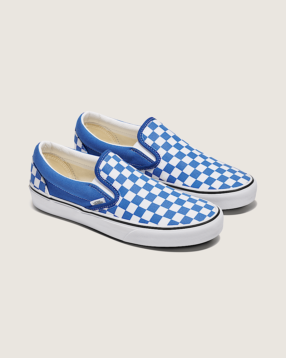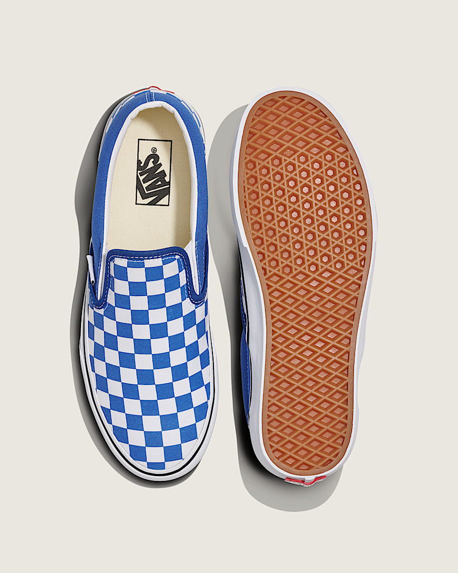 Slip on shoeCanvas upper for a durable and classic lookPadded collar for enhanced support and comfortElastic side panels give a comfortable easy on-and-off fitDurable rubber sidewall with classic foxing stripeReinforced toe bumper for heavy wear and tear.Signature waffle outsole pattern for reliable grip since '66Vulcanized sole for superior board feel and flexibilityCheckerboard branding is unmistakably Vans
