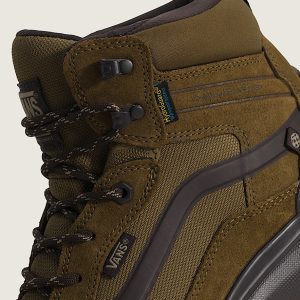 High-top waterproof sneaker-bootDesigned for adventure but versatile enough for everyday wearHydroGuard 360 waterproof construction offers reliable waterproof protectionNon-insulated, designed for four-season wearabilityAll-Trac treaded outsole delivers reliable traction in all weather conditionsLeather-reinforced high-flex zones provide both durability and mobilityReinforced toe and heal caps for provide max protection against tough terrainUltraCush midsole cushioning for long-lasting comfortEnhanced cushioning and moderate stabilityThe Checkerboard Globe logo signifies that 30% of the product is made of one or a combination of Regenerative, Renewable, and/or Recycled materialsSignature Sidestripe brings classic Vans DNA to the designHeight: 4.5"Lace closure provides a secure, adjustable fitOffset (heel-to-toe drop): 8 MMWeight: 20.2 OZ
