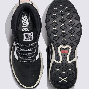 Water-repellant, all-terrain mid-top sneakerDesigned for daily wear, unexpected weather, and light outdoor activitiesDWR (durable water repellent) coating to shed light moistureTreaded outsole delivers reliable tractionNon-insulated, designed for four-season wearabilityUltraCush™ midsole cushioning for long-lasting comfortMaximum cushioning and moderate stabilityMade using recycled, renewable, and/or regenerative materialsSignature Sidestripe brings classic Vans DNA to the designLace closure provides a secure, adjustable fitOffset (heel-to-toe drop): 7 mmWeight: 22.4 oz
