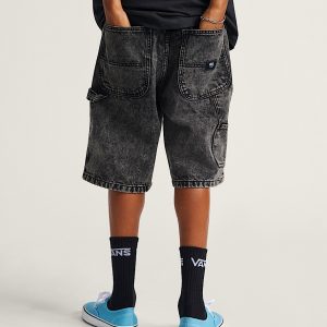 Heavyweight woven denim shortTraditional carpenter style detailsFront slash hand pockets with coin pocketRear patch pocketsHammer loop and tool pocket'V' belt loop detail on back waistbandLoose fit for a roomy look and a free-flowing shapeOutseam: 22"100% cotton