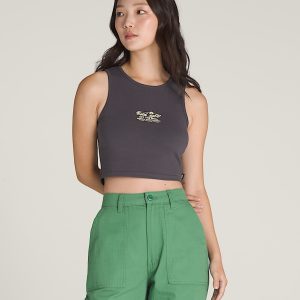 Rock Vans® history in the Everydayness Crop Tank, a heavy cotton jersey fitted crop tank with a hint of stretch. It features a graphic on the front calling out the Vans origin date and its contributions to streetwear.