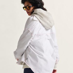 Long sleeve button up Oxford-style shirtRaw hem with contrast top stitchingEmbroidered details at center back neckOversized fit for an ultra-relaxed feel100% cotton