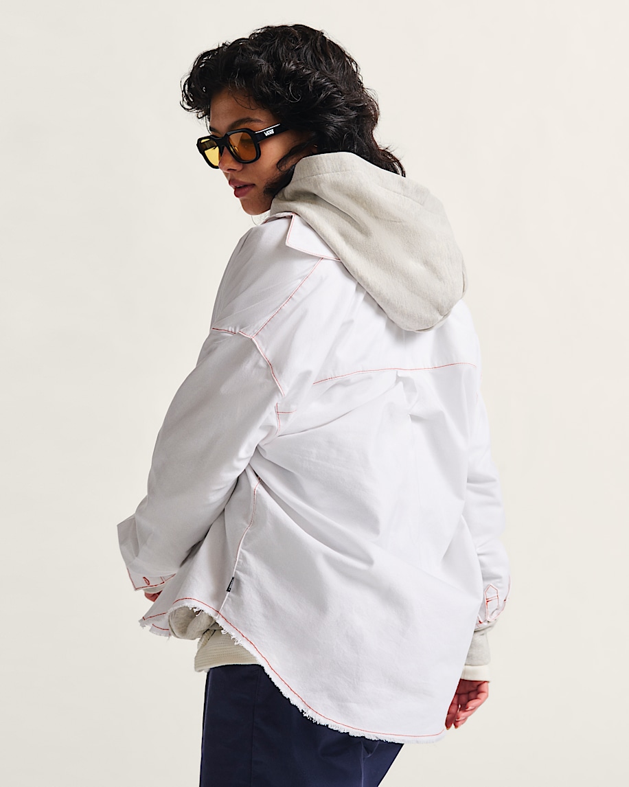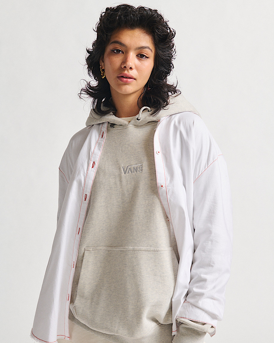 A wardrobe staple with a streetwear edge, the Gillian Button Up Shirt is a modern take on the Oxford style that exploded in popularity in the U.S. back in the 50s. The Vans® version features a raw hem and contrast top stitching, all in a roomy, oversized fit.