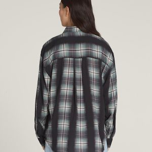 Long sleeve button down Oxford-style shirtAllover plaid printOversized fit for an ultra-relaxed feel100% Viscose fabric