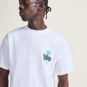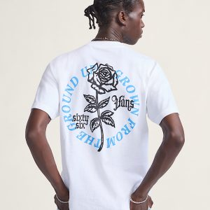 Bloom in the Grown From The Ground Up T-Shirt, a crewneck shirt with a classic look. Screen print artwork features long-lasting design of a scripted Vans logo atop a rose on the front, while short sleeves give casual, everyday style.