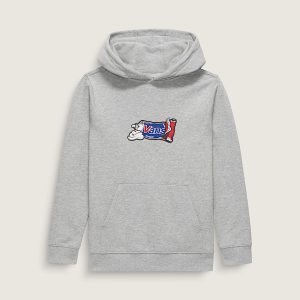 The Kids Fresh Pullover Hoodie is a classic kangaroo pocket pullover made of warm and cozy brushback fleece. It also features ribbed details with a screenprinted graphic of a Vans®-branded toothpaste tube on the front.