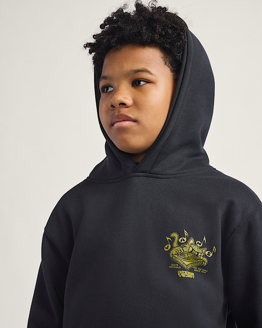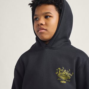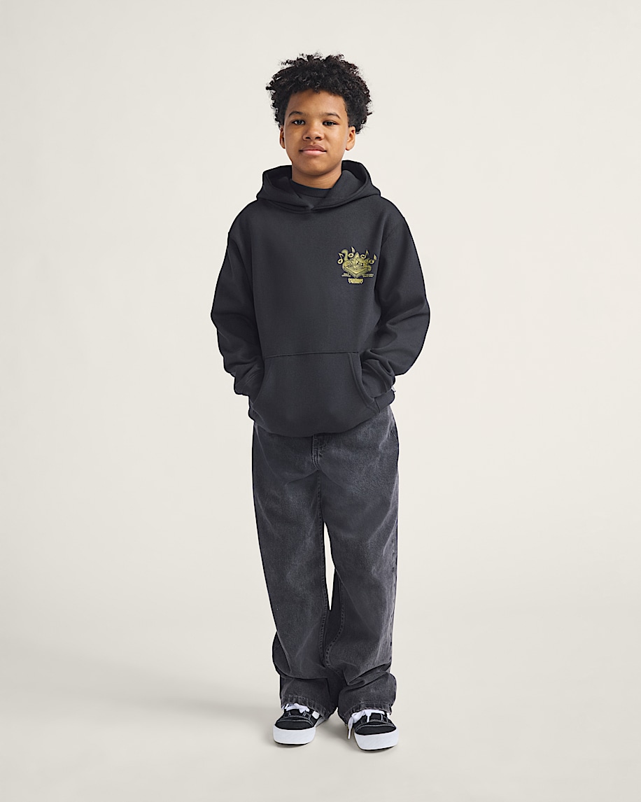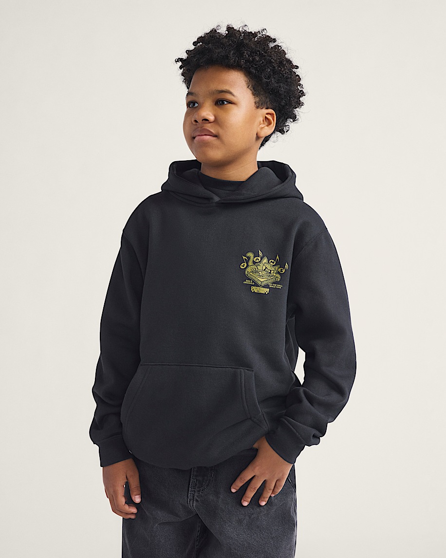 Go vinyl in the Scratched Records Pullover Hoodie, with screen print artwork for long-lasting design featuring a Vans music note logo on the front, and the kind of grooves only records can produce on the back. Long sleeves add extra coverage, while a front kanga pocket and a soft brushed interior add comfort and warmth.