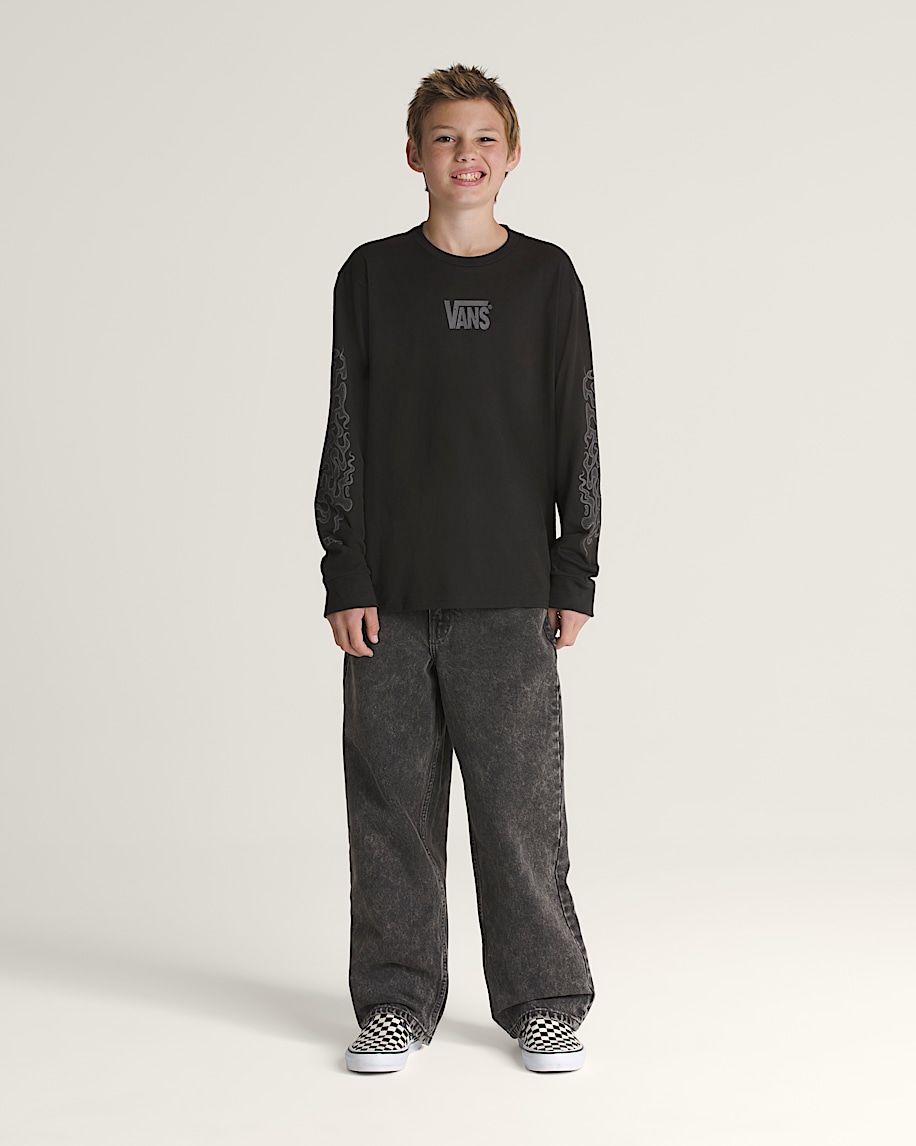 The Kids MTE Wave Dunes Long Sleeve T-Shirt is a long sleeve crew neck T-shirt with a screenprinted graphic of a Vans® logo on the chest, and artistic waves down the sleeves.