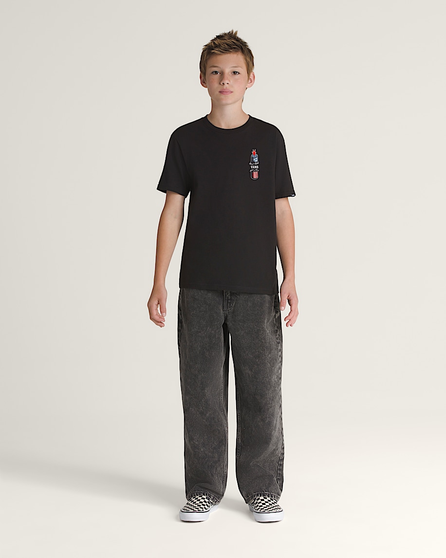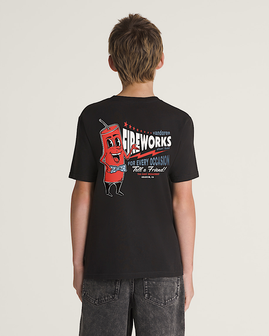 The Kids Works T-Shirt is a short sleeve crewneck tee made from a heavier weight cotton and features firework graphics.