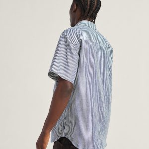 Crafted of a blend of cool, breathable linen and cotton, the Lawson Stripe Button Up Shirt is a wardrobe staple that looks as at home at the skate park as it is in the boardroom. With a simple button down front and rounded hemline, it's finished with branded Vans® details that nod to street style.