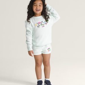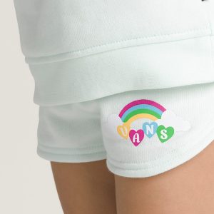 The Little Kids Chasse Shorts make the day more playful with a cozy fleece fabrication and an elastic waistband for comfort. They feature a Vans®-branded rainbow logo graphic at the hem.