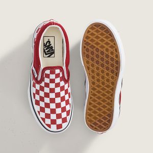 Slip on shoeCanvas upper for a durable and classic lookPadded collar for enhanced support and comfortElastic side panels give a comfortable easy on-and-off fitRubber sidewall with classic foxing stripeSignature waffle outsole pattern for reliable grip since '66Vulcanized build for the original look and feelCheckerboard branding is unmistakably Vans