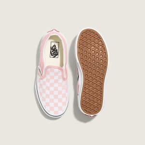 Iconic Slip-On shoe made for kidsLow profile canvas uppersClassic checkerboard printSupportive padded collarsElastic side accentsSignature rubber waffle outsoles