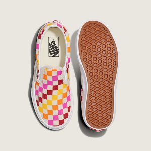 Slip on shoeCanvas upper for a durable and classic lookPadded collar for enhanced support and comfortElastic side panels give a comfortable easy on-and-off fitDurable rubber sidewall with classic foxing stripeReinforced toe bumper for heavy wear and tear.Signature waffle outsole pattern for reliable grip since '66Vulcanized sole for superior board feel and flexibilityCheckerboard branding is unmistakably Vans