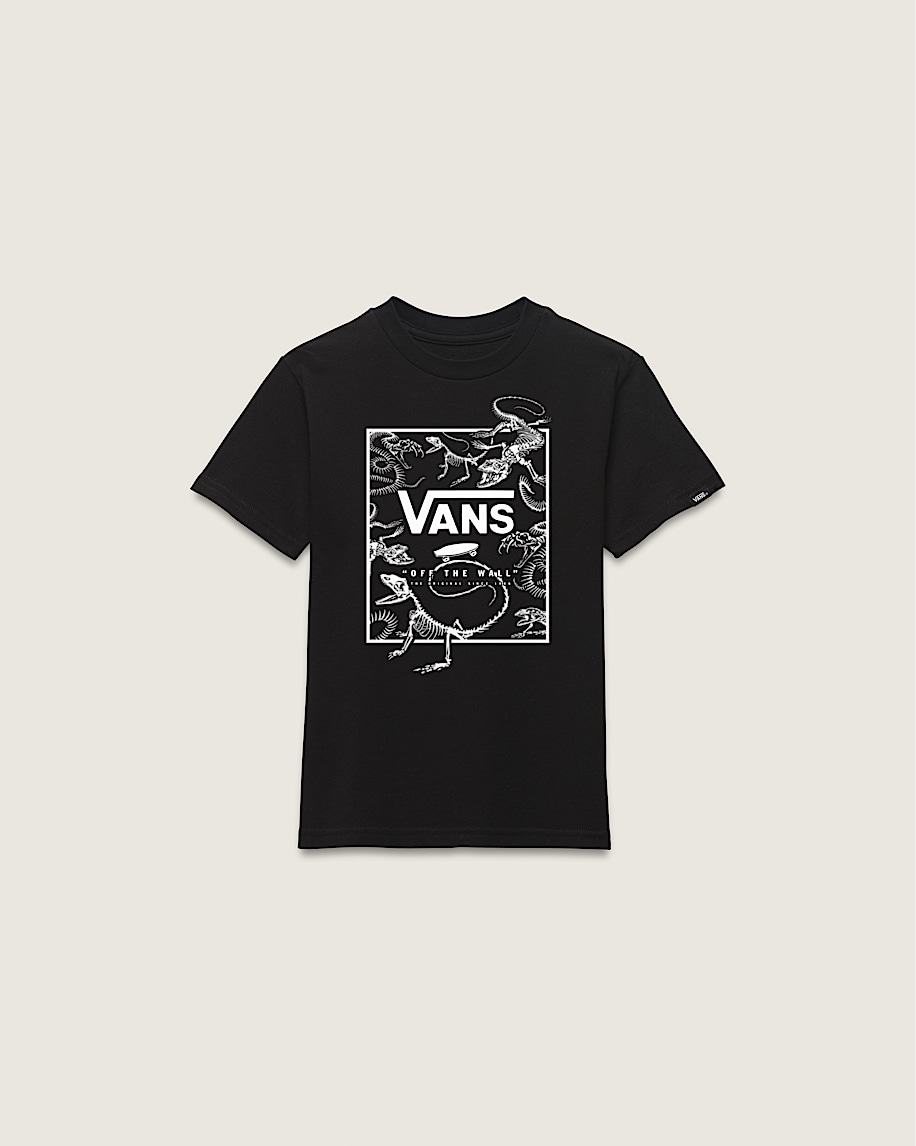 The Little Kids Dino T-Shirt lights up the dark with a graphic that glows long after the sun goes down. Featuring skeleton dinos and the Vans “Off The Wall” logo, this tee adds prehistoric energy to playtime—day or night.