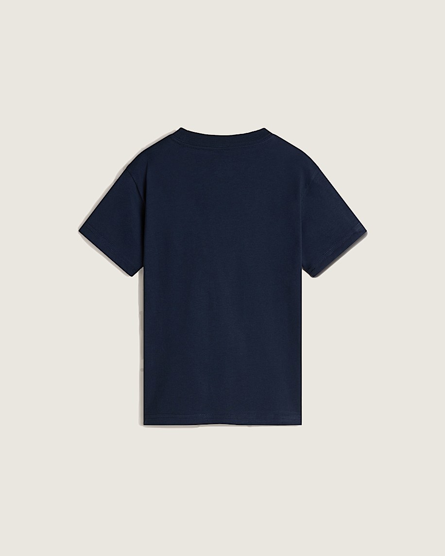 Break out in the Little Kids Headwaves T-Shirt, a short sleeve crew neck T-shirt. Featuring carded ringspun fabrication for a softer, smoother shirt, it also showcases a graphic of a skull breaking through a checkerboard ring with a Vans® logo beneath.