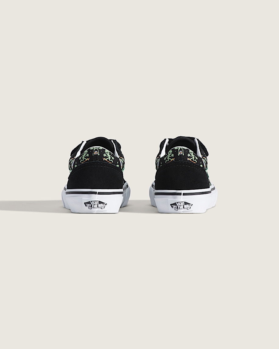 Iconic low-top shoeRecommended for ages 4 – 8 yearsSuede and canvas uppersGlow-in-the-dark alien print and SidestripeDouble hook-and-loop closuresPadded collar for enhanced support and comfortSignature waffle outsole pattern for reliable grip since '66Vulcanized build for the original look and feelIconic Sidestripe™ insignia