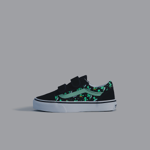 The Little Kids Old Skool V brings the glow with alien graphics that shine in the dark—and a Sidestripe that lights up the night. Finished with easy hook-and-loop straps and durable suede details, this reworked classic is built for everyday out-of-this-world adventures.
