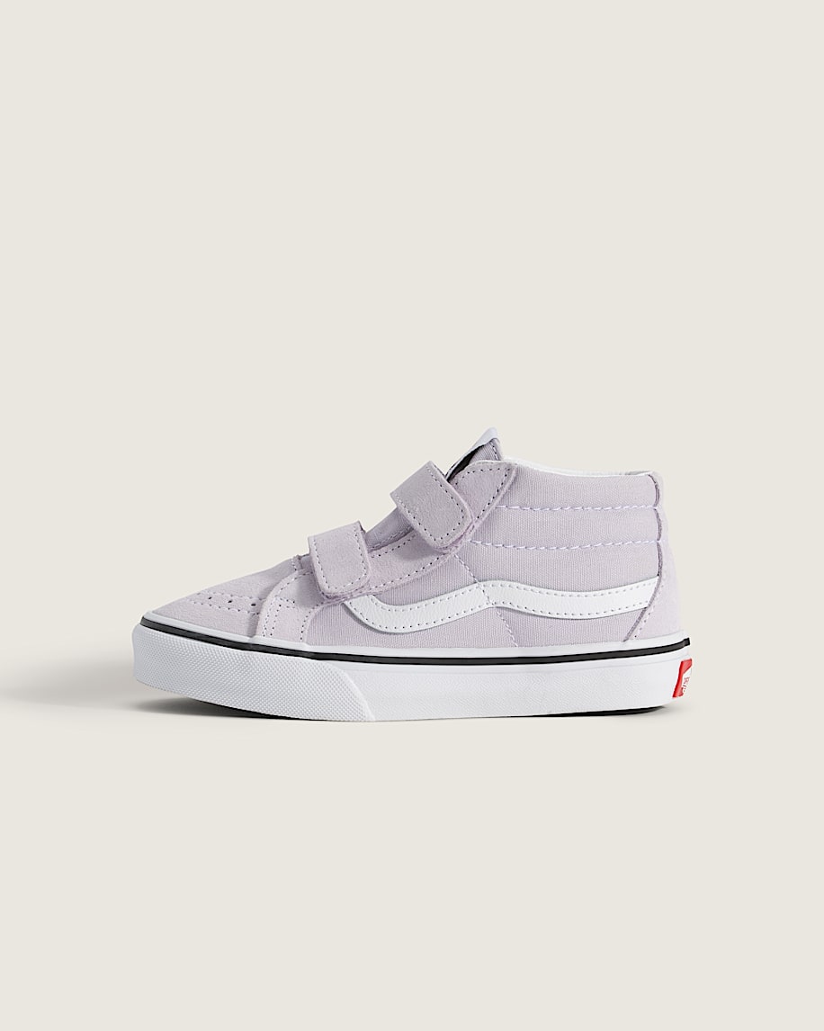 Legendary Sk8-Hi aesthetic in a mid-top shoeLeather upper for a smooth, durable finishSupportive padded collarsIconic Sidestripe™ insigniaSignature waffle outsole pattern for reliable grip since '66Vulcanized build for the original look and feelDouble hook-and-loop closures for easy on and off