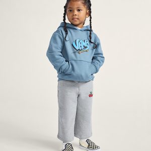 Finish your winter weather layers with the Little Kids Vans Sk8 Pullover Hoodie, an effortless design with a front kanga-style pocket for stashing your stuff. Super soft brushed back fleece brings the heat, while the long-lasting screen print artwork of a cartoon-style Vans logo on a skateboard finishes the look.