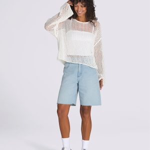 Open knit cropped pullover sweater80% cotton, 20% acrylic
