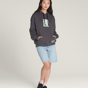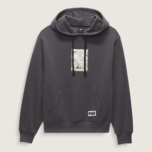70% cotton, 30% polyesterPullover hoodie with kangaroo pocketFleece fabricationTunneled drawcordRibbed cuffs and hemScreenprinted graphic on the front
