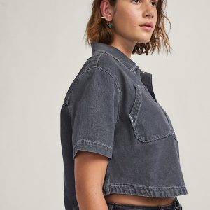 Short sleeve button-down with a boxy fit10 oz. woven denim for a structured feelWorkwear chest pocket for utility stylingPearlized snap buttons for subtle detail100% cotton