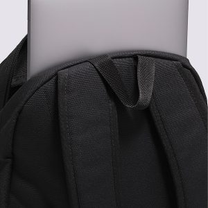 Shell: 100% Recycled Polyester fabricLining: 100% Recycled Polyester fabricTrim: 100% LeatherLarge main compartmentFront pocket with organizerLaptop sleeve that fits most 15'' laptops (laptop not included)Water bottle pocketErgonomic, padded shoulder strapsSuede bottom panelCapacity: 22 LitersDimensions: 16 5/8" x 12 3/4" x 4 3/4"