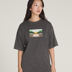 Overdye wash for super saturated colorShort-sleeve crew neck t-shirtScreenprinted graphic on the frontLoose fit for a roomy look and a free-flowing shape100% cotton