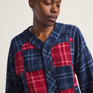 Patchwork construction with contrast flannel panelsSoft yarn-dyed flannel with a dense weave and brushed finishFull button-front for easy wear and layeringBaseball collar keeps the look sharp and low-profileAdjustable cuffs for a personalized fitHand pockets for added functionRaglan sleeves for a relaxed, easy-moving shapeOTW flag label for a subtle brand signatureLoose fit for a roomy, non-restrictive feelBrushed softness with a warm, easy feel100% cotton