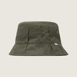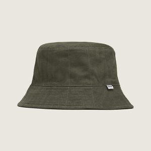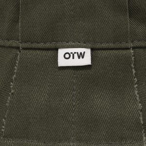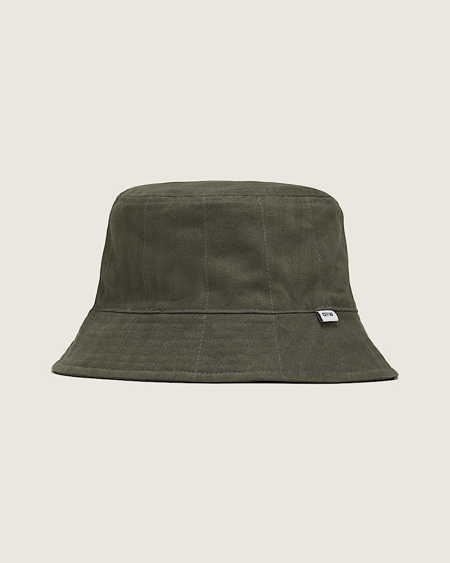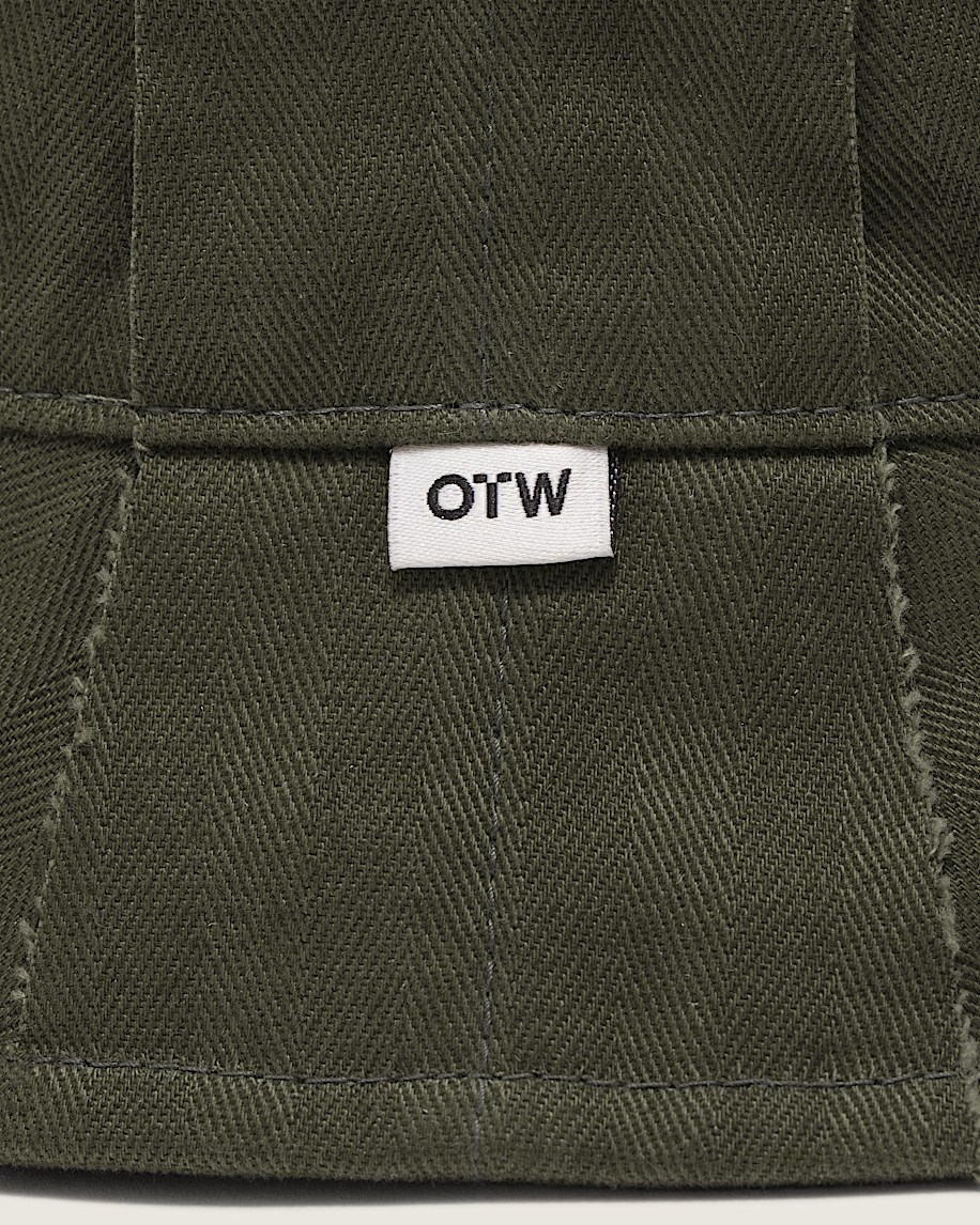 Reversible bucket hat for two distinct looksOne side offers raw edged hemsThe other side is flat stitchedOTW flag label on both sides100% cotton herringbone