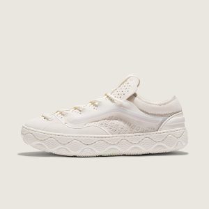 Future Make series, release 1Tonal off-white design for a clean, streamlined aestheticLofted engineered-knit cotton upper and tongue for added breathable comfortHeavy-duty round laces3D-injected Sidestripe gives a futuristic aesthetic, plus structural supportMolded rubber toe cap and heel for enhanced durabilityReinterpreted waffle pattern outsole inspired by FM radio frequencies adds increased gripSola Foam ADC (All-Day Comfort) insole for soft and durable cushioning, 30% bio-based material