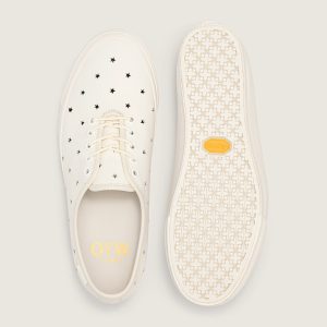 Classic low-top originally known as Style 44Minimalist one-piece upper for a seamless, refined lookUnlined full-grain leather for a deconstructed feel and added comfortCollapsible, making it easy for travelRound cotton lace with metal eyelets4 metal eyelet lace rows for sizes 3.5-65 metal eyelet lace rows for sizes 6.5 and upAll-over perforated star pattern for breathability and textureLeather footbed for a premium look & feelSola Foam ADC (All-Day Comfort) insole for soft and durable cushioning, it is made using at least 30% biobased PU foam partially derived from plants and it is USDA Certified BiobasedOTW white logo heel scab