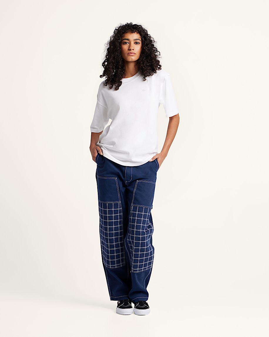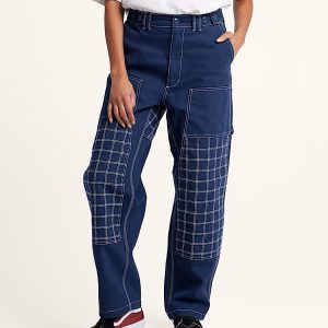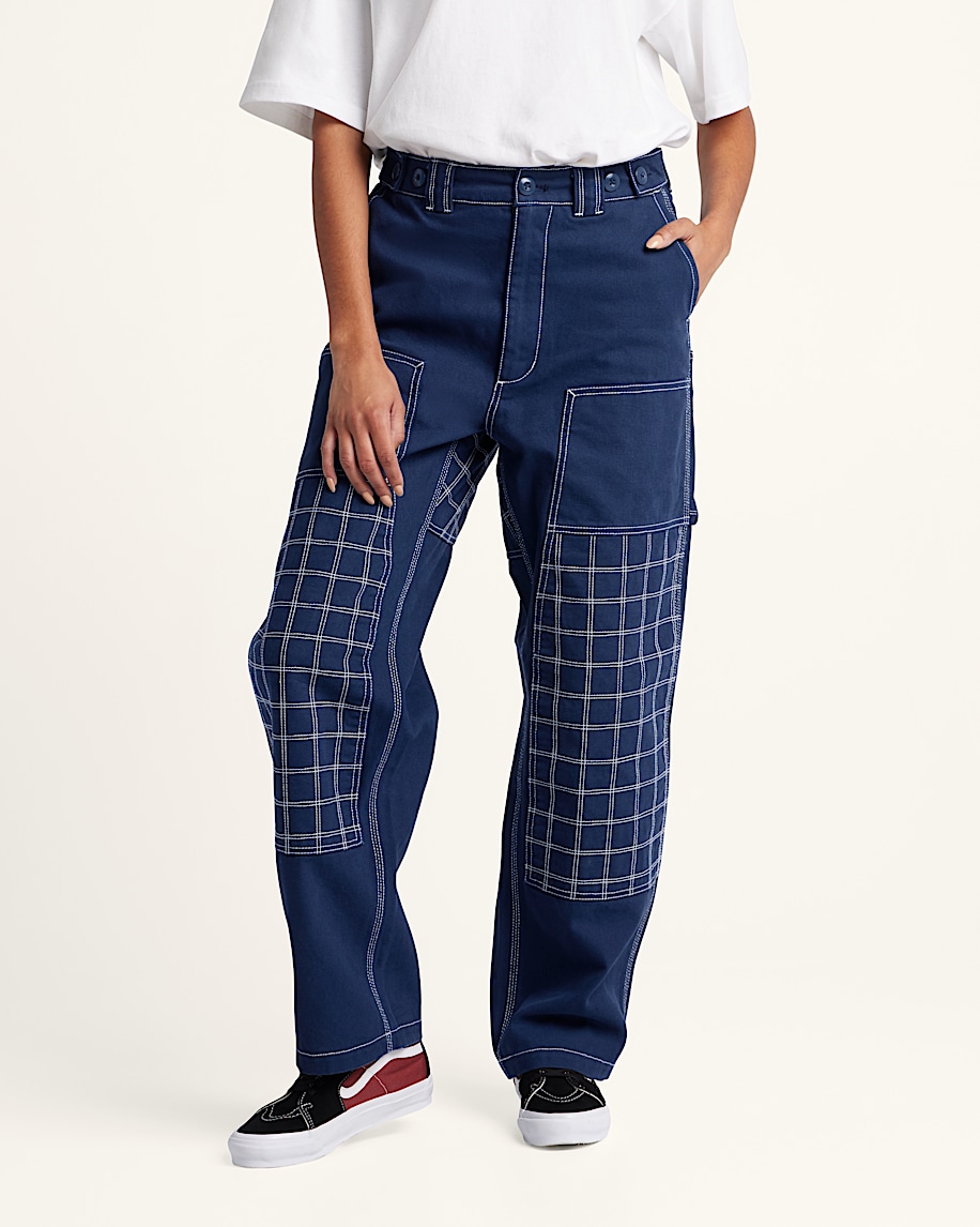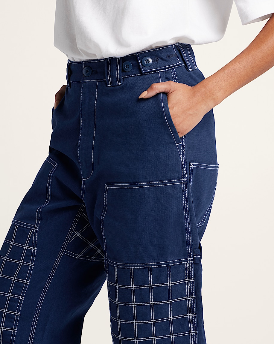 Quilted cotton blend fabric for added warmth and comfortCarpenter-style pockets and reinforced utility detailsRelaxed fit with straight leg for easy movementDouble-layer knees designed for durabilityClean waistband with belt loops and zip-fly closureMitchell is 5' 10" and is wearing a size 31/MSephira is 5' 8.5" and is wearing a size 26/S100% 10 oz. Cotton Canvas; Pocket Lining: 65% Polyester, 35% Cotton