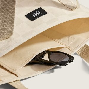 Interior hanging pocketWeb handlesDetachable zip pouchRemovable adjustable shoulder strapCapacity: 8 LDimensions: 12" x 12" x 5"Shell: 100% cotton