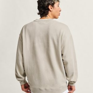 Long sleeve crew neck sweatshirtFleece fabrication for extra cozinessOversized fitScreen printed graphics on the chest70% cotton, 30% polyester