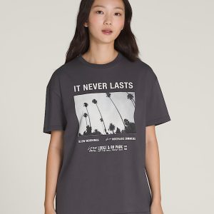 Let go in the Photo Neverlasting T-Shirt, an oversized heavy cotton jersey crew neck T-shirt. It features a graphic of photographed palm trees with additional Vans® branding.