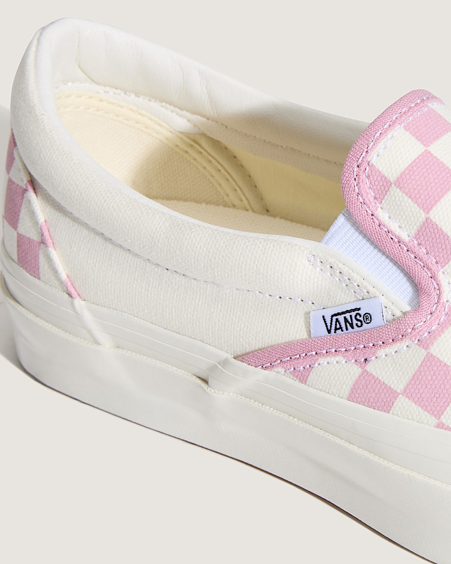 Signature Slip-On shoe8 oz canvas upper for a light but durable finishPadded collar for support and comfortElastic side panels for easy slip-on and offHigher sidewall with gloss finishFoxing tape inspired by original 90's Osnaburg reinforced outsolesUpgraded footbed and refined construction combine for a more seamless fitSola Foam ADC (All-Day Comfort) insole for soft and durable cushioning, 30% bio-based materialVulcanized build for the original look and feelSignature waffle outsole pattern for reliable grip since '66Checkerboard pattern on vamp and heel