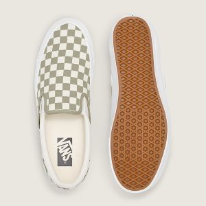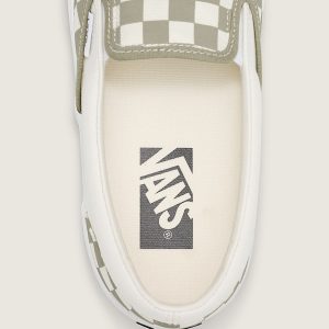 Iconic Slip-On shoe8 oz canvas upper for a light but durable finishPadded collar and lining for added comfortElastic side panels for easy slip-on and offHigher sidewall with gloss finishUpgraded footbed and refined construction combine for a seamless fitSola Foam ADC (All-Day Comfort) insole for soft and durable cushioning, 30% bio-based materialSignature waffle outsole pattern for reliable grip since '66Checkerboard pattern on vamp and heel