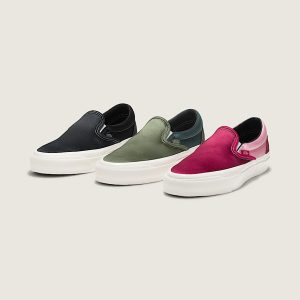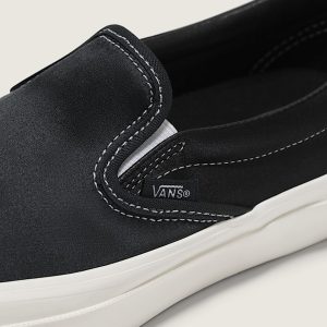 Signature Slip-On shoeSatin upper for an elevated look with a soft, natural sheenLeather collar liningWoven flag labelHigher sidewall with gloss finishFoxing tape inspired by original 90's Osnaburg reinforced outsolesSola Foam ADC (All-Day Comfort) insole, soft and durable cushioning, 30% bio-based material