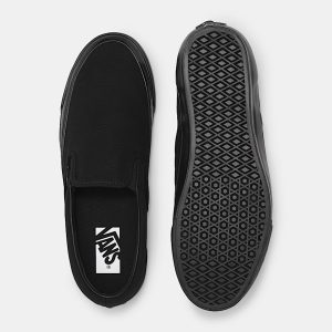 Iconic Slip-On shoe8 oz canvas upper for a light but durable finishPadded collar for support and comfortElastic side panels for easy slip-on and offHigher sidewall with gloss finishFoxing tape inspired by original 90's Osnaburg reinforced outsolesUpgraded footbed and refined construction combine for a more seamless fitSola Foam ADC (All-Day Comfort) insole for soft and durable cushioningSignature waffle outsole pattern for reliable grip since '66Earns Vans Sustainable Checkerboard Globe with 30% eco materials