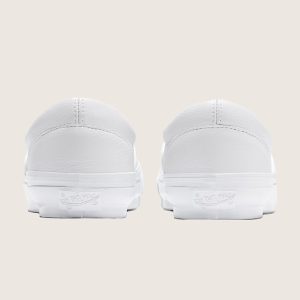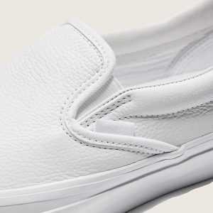 Iconic Slip-On shoeLeather upper for a smooth, durable finishPadded collar for support and comfortElastic side panels for easy slip-on and offHigher sidewall with gloss finishFoxing tape inspired by original 90's Osnaburg reinforced outsolesUpgraded footbed and refined construction combine for a more seamless fitSola Foam ADC (All-Day Comfort) insole for soft and durable cushioningSignature waffle outsole pattern for reliable grip since '66Earns Vans Sustainable Checkerboard Globe with 30% eco materials