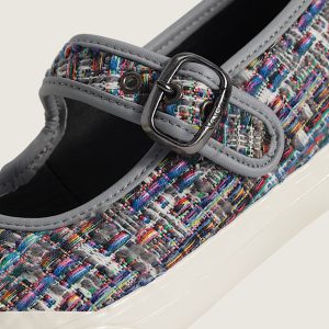 Mary-Jane style silhouetteColorful tweed upper with leather trim for texture and visual interestAdjustable buckle closureSola Foam ADC (All-Day Comfort) insole for soft and durable cushioning, it is made using at least 30% biobased PU foam partially derived from plants and it is USDA Certified BiobasedVulcanized build for the original look and feelSignature waffle outsole pattern for reliable grip since '66