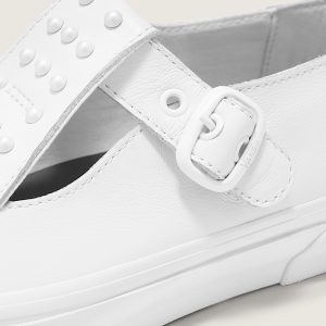 Mary-Jane style silhouetteLeather upper for a smooth, durable finishAdjustable buckle closureStudded metal pearls cover vamp and heelHigher sidewall with gloss finishFoxing tape inspired by original 90's Osnaburg reinforced outsolesUpgraded footbed and refined construction combine for a more seamless fitSola Foam ADC (All-Day Comfort) insole for soft and durable cushioning, 30% bio-based materialSignature waffle outsole pattern for reliable grip since '66
