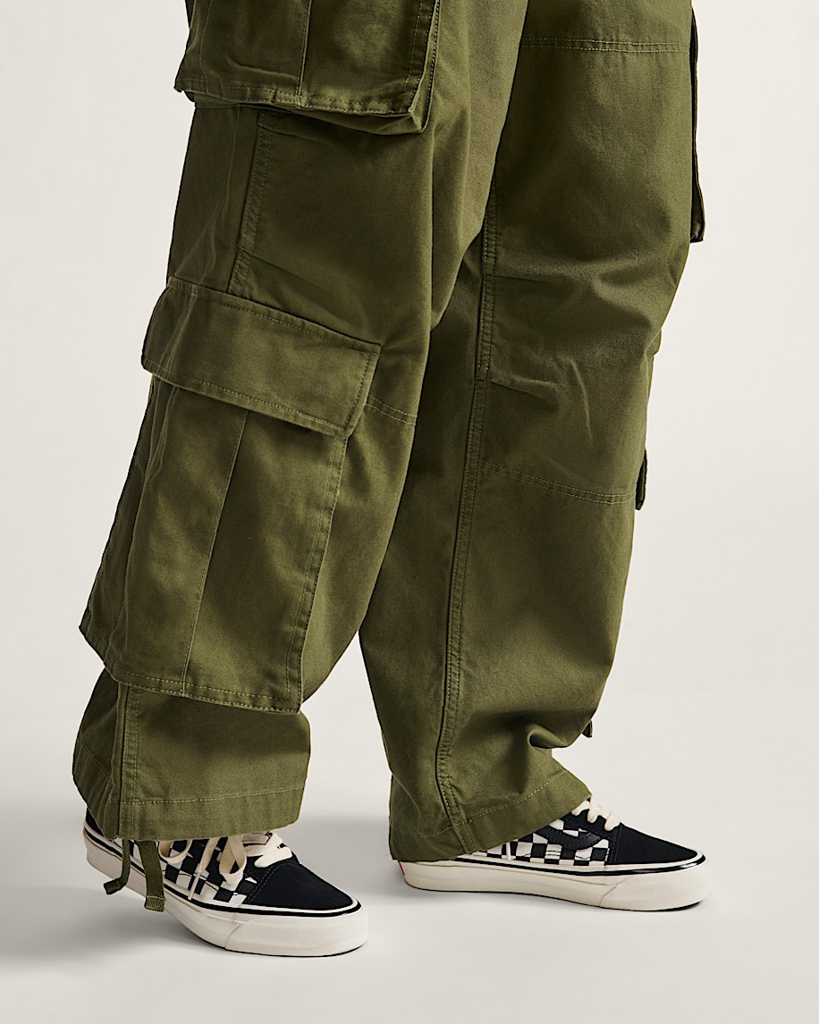 Skate-inspired, low-top shoeMusic Collection, Warped Tour CapsuleCanvas and suede upper layers two texturesLeather collar lining and padded collar for support and comfortHigher sidewall with glossy finish100% cotton laces, woven flag labelFoxing tape inspired by original 90's Osnaburg reinforced outsolesUpgraded footbed and refined construction combine for a seamless fitSola Foam ADC (All-Day Comfort) insole for soft and durable cushioning, 30% bio-based materialRegenerative rubber outsoles for more sustainabilityIconic Sidestripe™ insigniaRed logo heel scabCheckerboard print