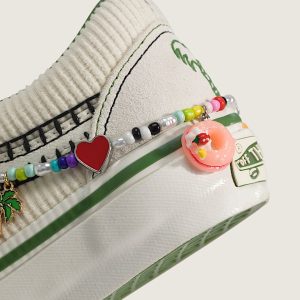 DIY-inspired low top shoeCorduroy upper with suede overlays, DIY embroidery, safety pins, and charmsLace-up closure for an adjustable fitSoft leather collar for enhanced comfortHigher sidewall with gloss finishFoxing tape inspired by original 90's Osnaburg reinforced outsolesUpgraded footbed and refined construction combine for a more seamless fitCo-branded Sola Foam ADC (All-Day Comfort) insole for soft and durable cushioning, 30% bio-based materialTranslucent ice waffle outsole with hand-drawn art by CoconaIconic leather Sidestripe™ with oversized stitched outline